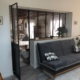 Conception et installation d’une bibliothèque sur mesure en mélaminé, conçue pour intégrer un espace bureau.