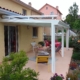 Pose de claustras en bois de Douglas à effet persienne, apportant légèreté et élégance à l’ensemble, accompagnée de la fabrication d’un portillon d’entrée assorti.