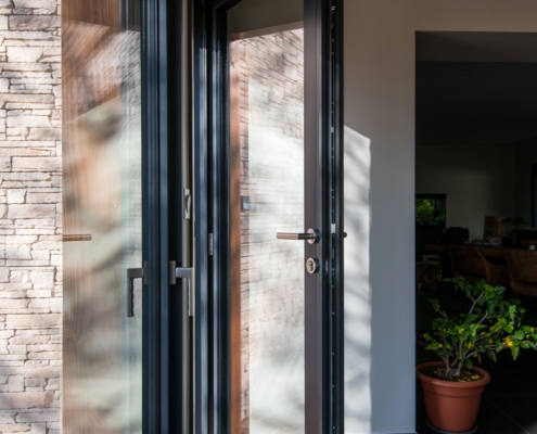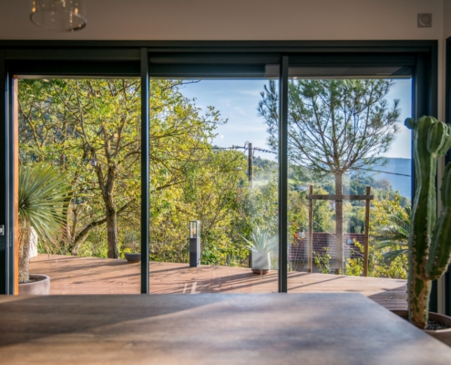 Rénovation énergétique d’une maison avec le remplacement de baies coulissantes, fenêtres, portes d’entrée et volets roulants.