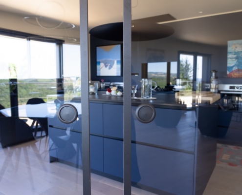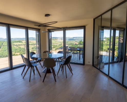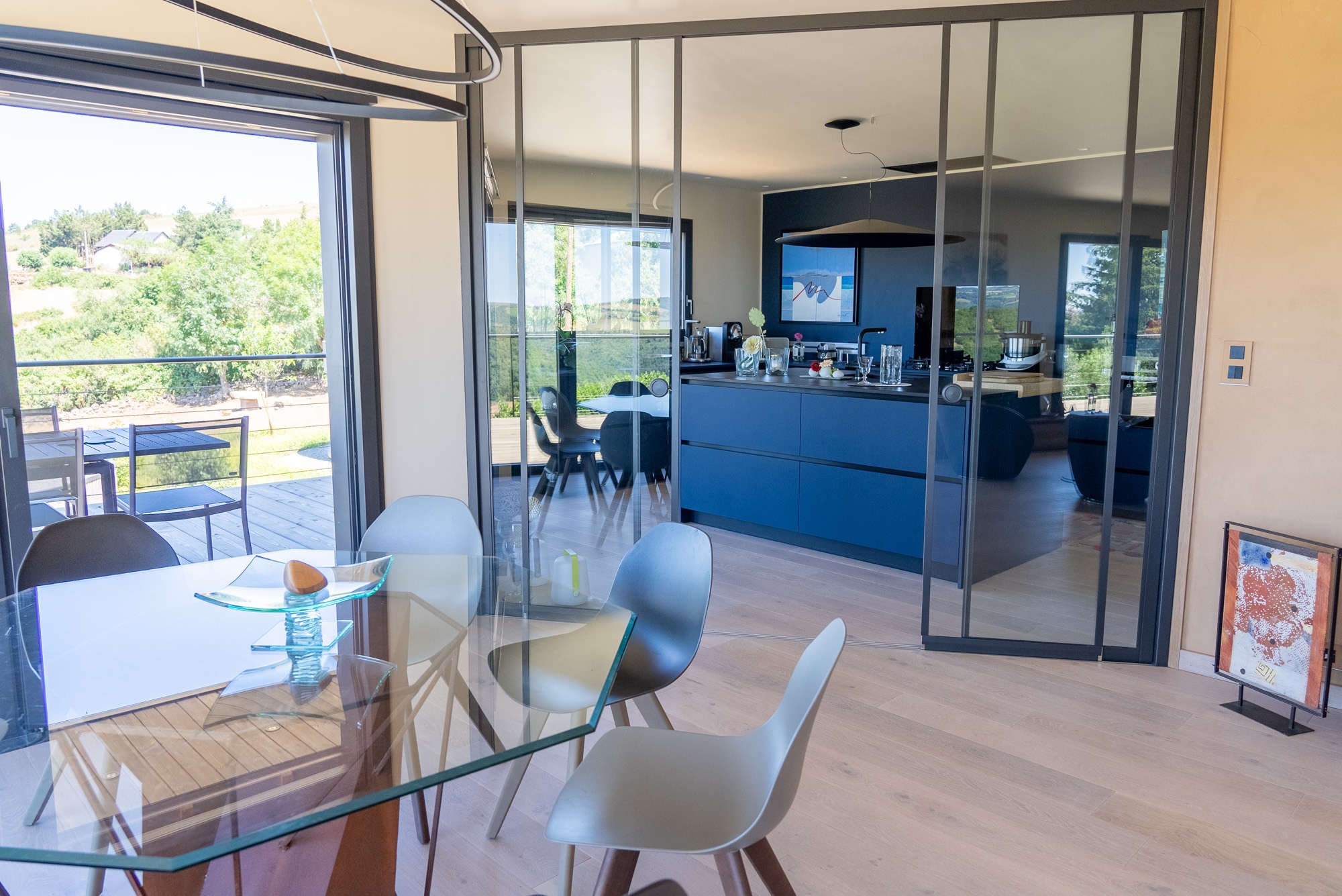 Mise en place d’une séparation vitrée en aluminium, entièrement ouvrante, permettant de séparer l’espace ou de créer une seule grande pièce.